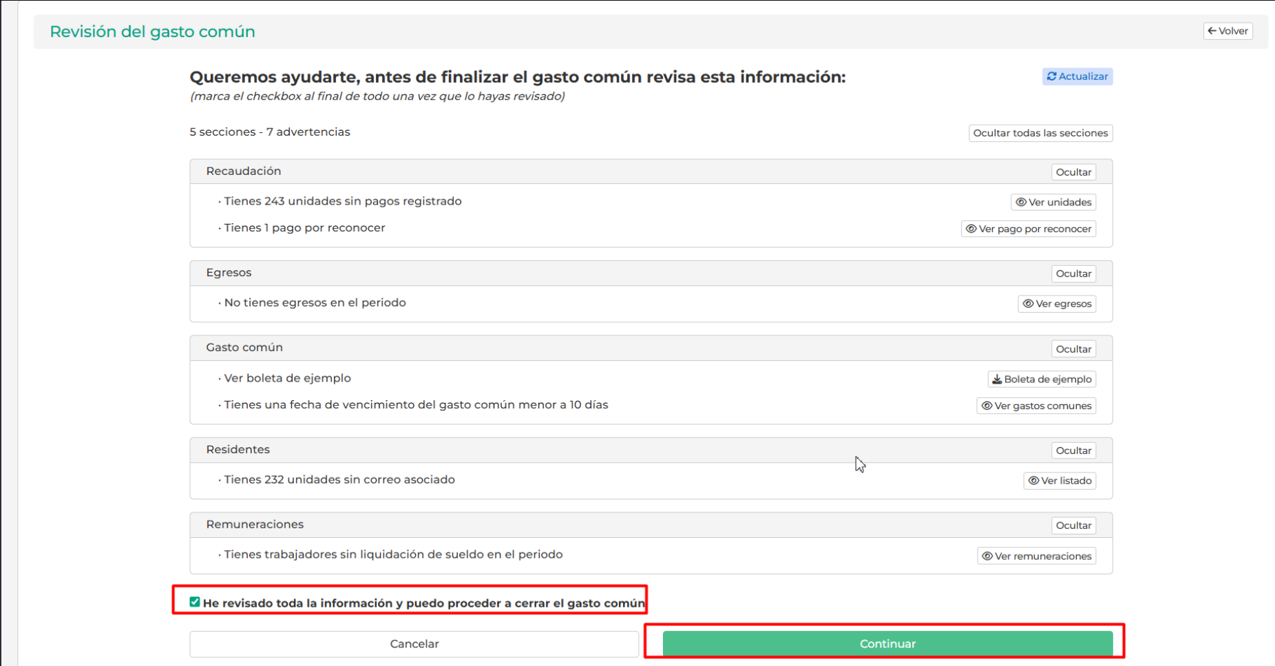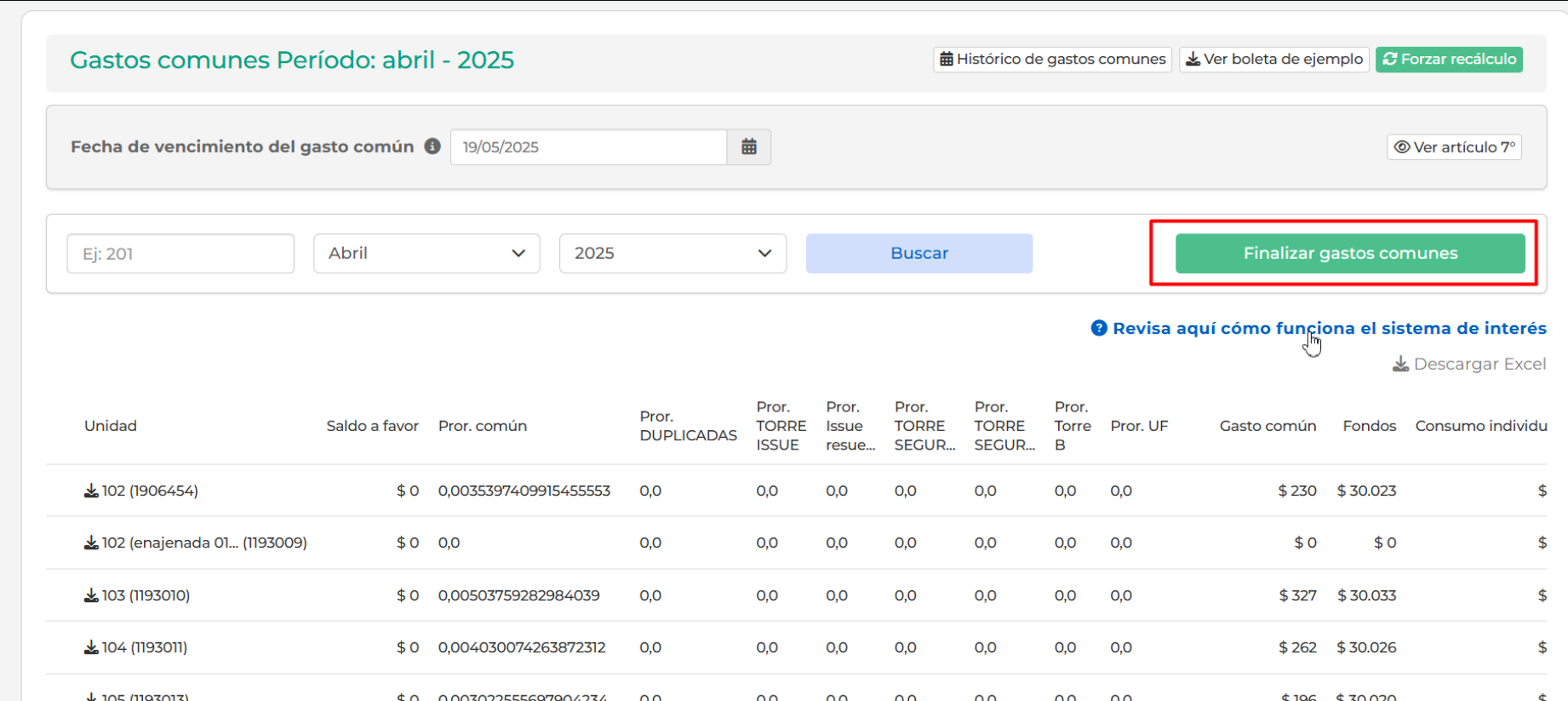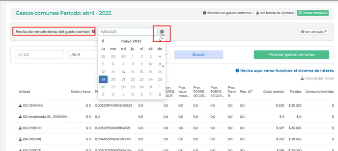Haz clic en "Finalizar Gastos comunes".