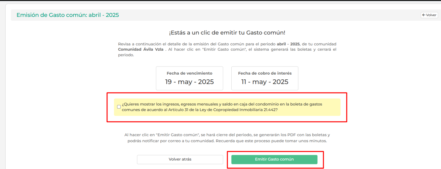 Cómo Emitir el Gasto Común en ComunidadFeliz