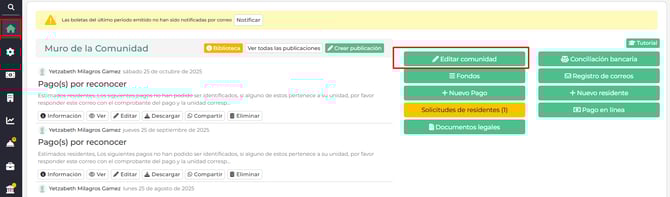 Ingresa al módulo Panel. Haz clic en “Editar Comunidad”.