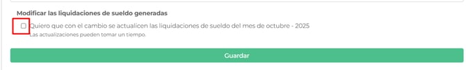 Una vez realizados los cambios, selecciona “Modificar las liquidaciones de sueldo generadas” para que se apliquen de forma masiva.