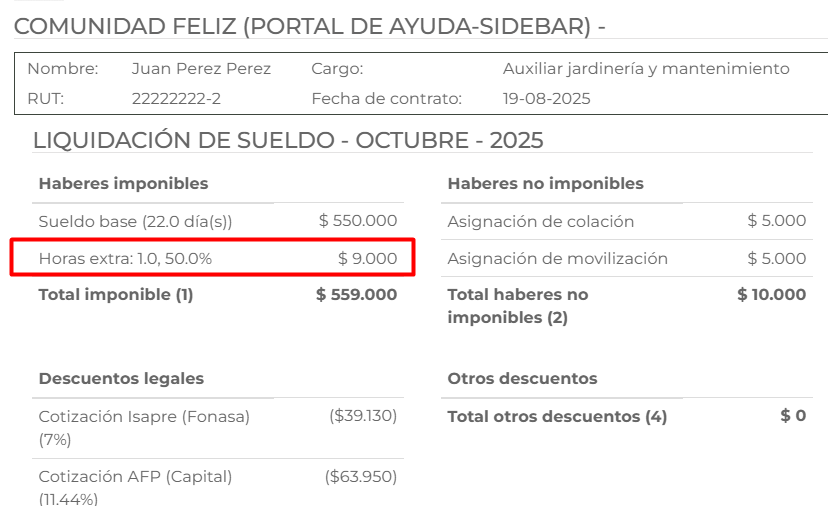Como podemos notar el valor de la hora extra coincide con lo reflejado en la liquidación creada.