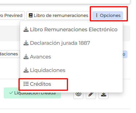 - Haz clic en Opciones y luego a la sección de Créditos.