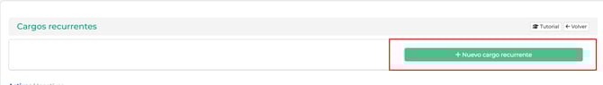 2. Accede a la opción de cargos recurrentes y verás la siguiente pantalla donde encontrarás el botón "Nuevo cargo recurrente".