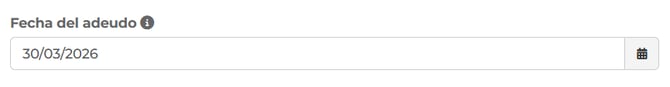 Nota importante: No es posible seleccionar fechas pasadas, como por ejemplo el 10/01/2026. La fecha de vencimiento del adeudo depende del período en el que se encuentre la comunidad en curso.