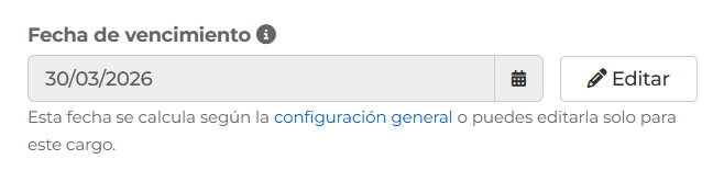 - Fecha de Vencimiento: A partir de esta fecha, el cargo se considerará vencido si no ha sido pagado.