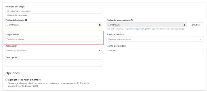4. A continuación, te explicaremos cómo cargar el cargo a todas las unidades o a algunas unidades específicas.