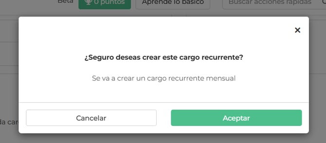 3. Cuando hagas clic en "Nuevo cargo recurrente", se mostrarán algunas opciones que debes completar para crearlo exitosamente.