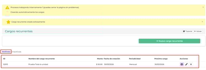 - Ojo de ver: 👁️Te permite vizualizar el detalle del cargo recurrente