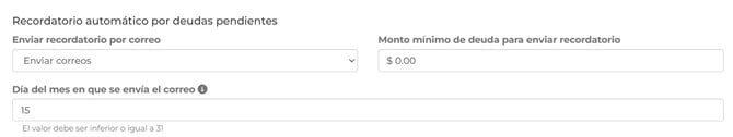 Configuración general: Este enlace te llevara a la configuracion del aviso de morosidad. Y recordatorio automattico poor deudas.