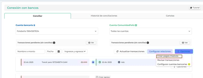 👉 ¿Cómo puedo asociar una transacción del banco con varios de Comunidad Feliz?