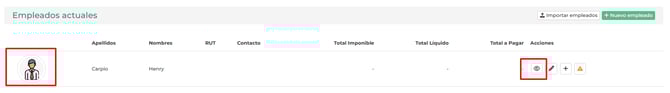 - Luego nos dirigimos al módulo de Remuneraciones, ubicamos al empleado y dar clic en "Ver trabajador" (icono del ojito), o también podemos seleccionar sobre la foto del trabajador