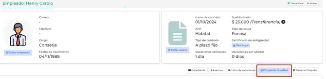 - Una vez que ingresamos a la información del trabajador, damos clic al botón de "Completar Previred".