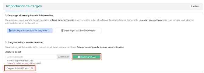 En la sección Importar, haz clic en Examinar y selecciona la planilla completada.