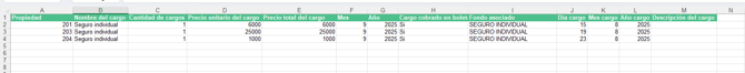 Precio unitario: corresponde al valor de cada cargo; puedes repetir cargos para la misma propiedad en diferentes filas.
