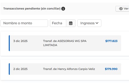 En el lado izquierdo visualizarás el monto de la cuenta bancaria, y en el lado derecho podrás ver cómo se encuentran asociadas las distintas transacciones.