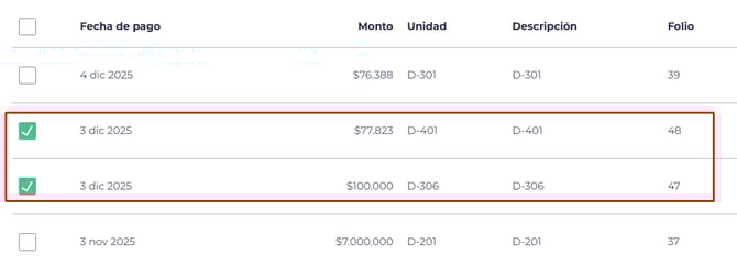4. Selecciona las transacciones que deseas asociar al pago único.