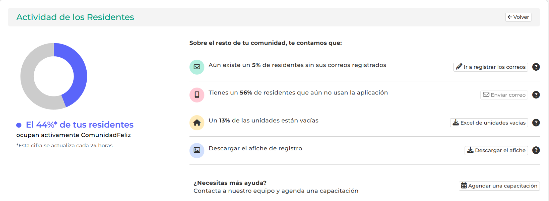 Revisar la Actividad de los Residentes en Comunidad Feliz