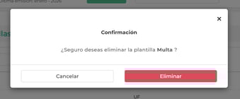 Eliminar: Si necesitas borrar la plantilla, haz clic en Eliminar. Deberás confirmar la acción en la ventana emergente para que el cambio sea permanente.