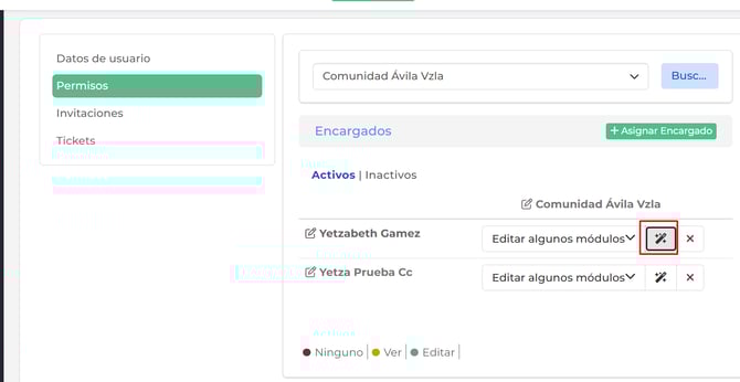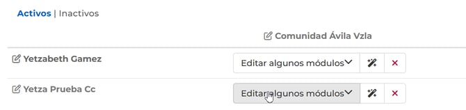 Para cambiar el permiso en un módulo, haz clic en el lado derecho y selecciona la opción deseada.