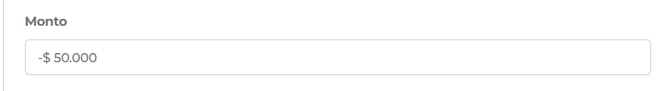 Ingreso del monto : Al momento de digitar la cifra en el campo de monto, debes anteponer el símbolo de menos (-).