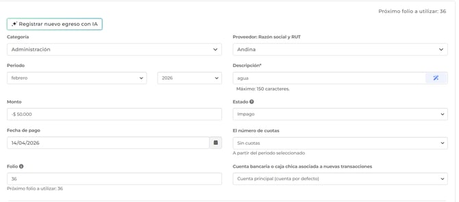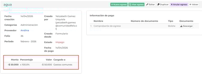 - Visualiza el detalle del egreso: