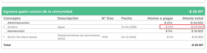Revisa el detalle de la boleta del gasto comun:
