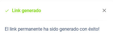 Confirma la generación del enlace: el sistema te mostrará un mensaje de confirmación indicando que el "Link generado" correctamente