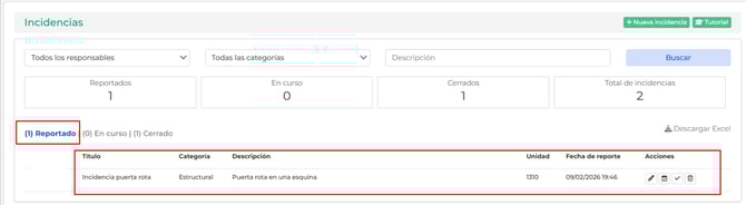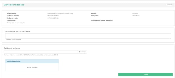 ⚠ Este módulo NO es una canal de comunicación con los copropietarios, por lo que no podrá visualizar quien fue el emisor de la incidencia ni comunicarse con él, el módulo está enfocado en atender las incidencias y realizará las notificaciones a los involucrados de forma automática.