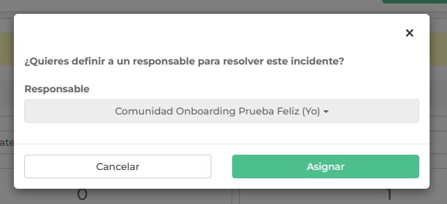 Elige a la persona responsable de gestionar la incidencia. Recuerda que los responsables son los perfiles de encargados.