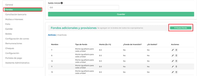 Fondo: Permite configurar y crear los nuevos fondos según las preferencias o necesidades específicas del condominio.