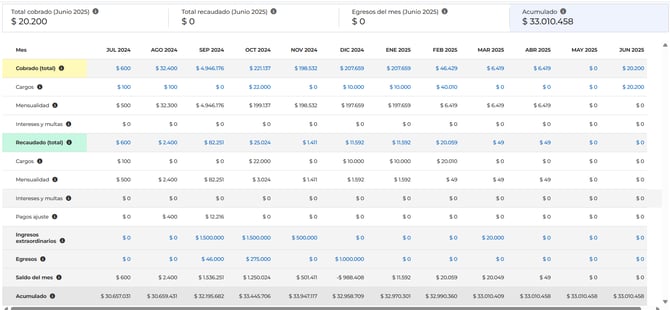 | Cobrado | Lo facturado en gasto común, sea que esté pagado o no. |