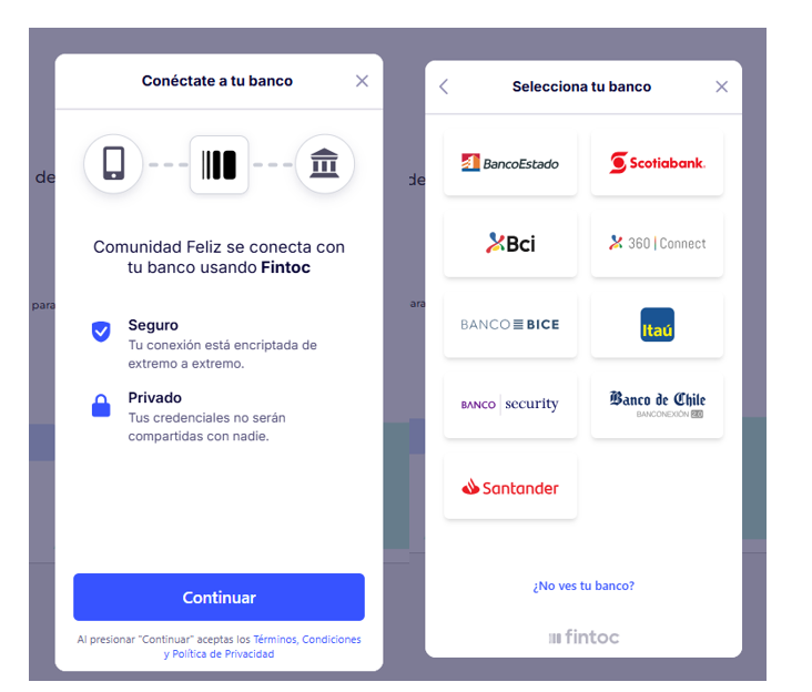 Este módulo te permite sincronizar tu banco con Comunidad Feliz para que puedas ver tus movimientos de forma automática y sin dramas.