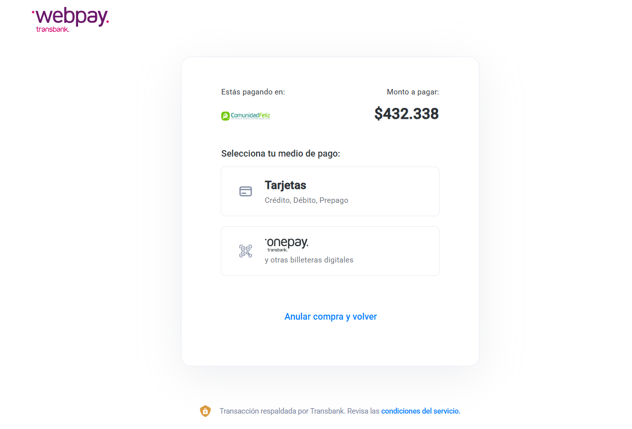 Opción b: Paga a traves de Webpay.
