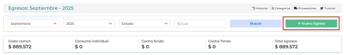 Para registrar un nuevo egreso, haga clic en el botón verde "Nuevo Egreso” ubicado en la parte superior derecha de la pantalla.