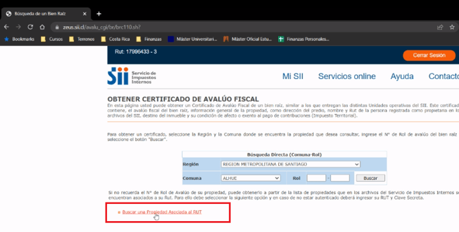 5️⃣ Haz clic en “Busca una propiedad asociada al RUT”