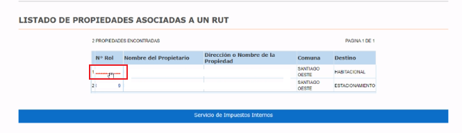 6️⃣ En la pantalla va a aparecer la propiedad asociada al RUT que ingresaste y le vas a dar clic.