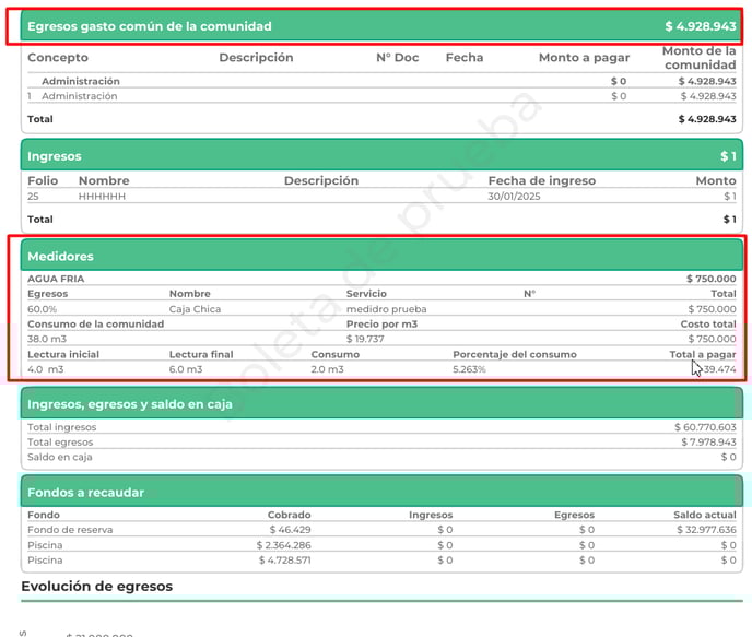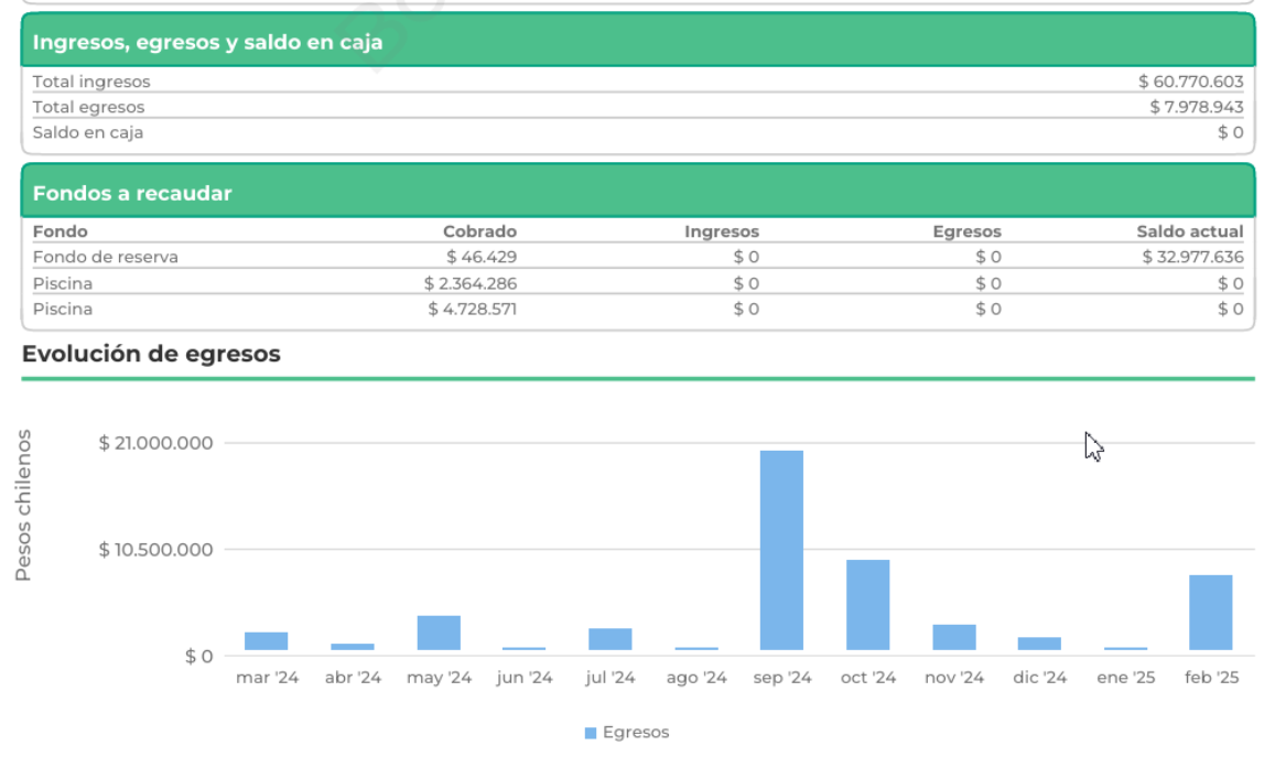 • Cobros del periodo: Relacionados con el último gasto común emitido (vigentes).