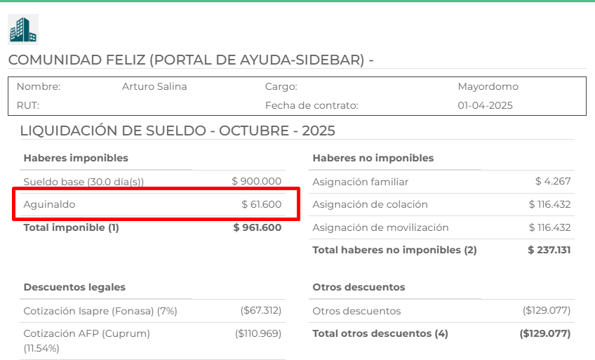 Paso 2: Agregar el Bono de Aguinaldo en la Liquidación de Sueldo