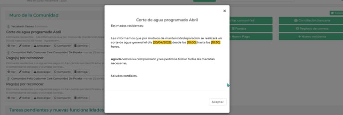 - Compartir: Ahora podrás compartir la publicación en el muro con tus residentes a través de WhatsApp.