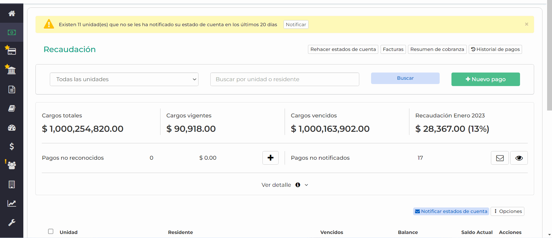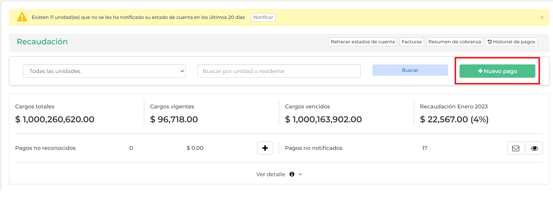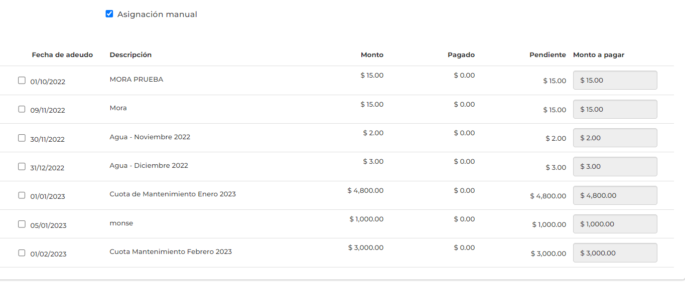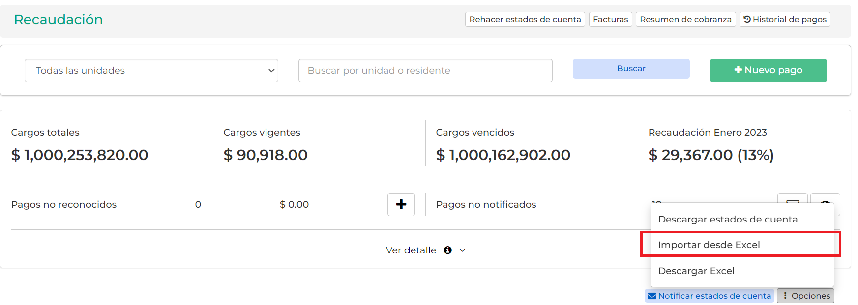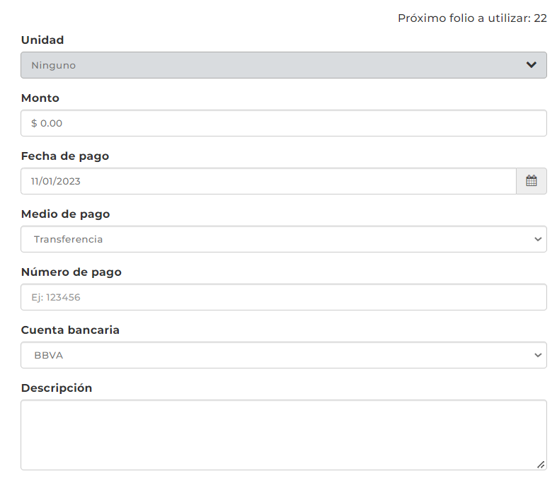 - Para los pagos no reconocidos solo deben dejar la unidad en blanco.
