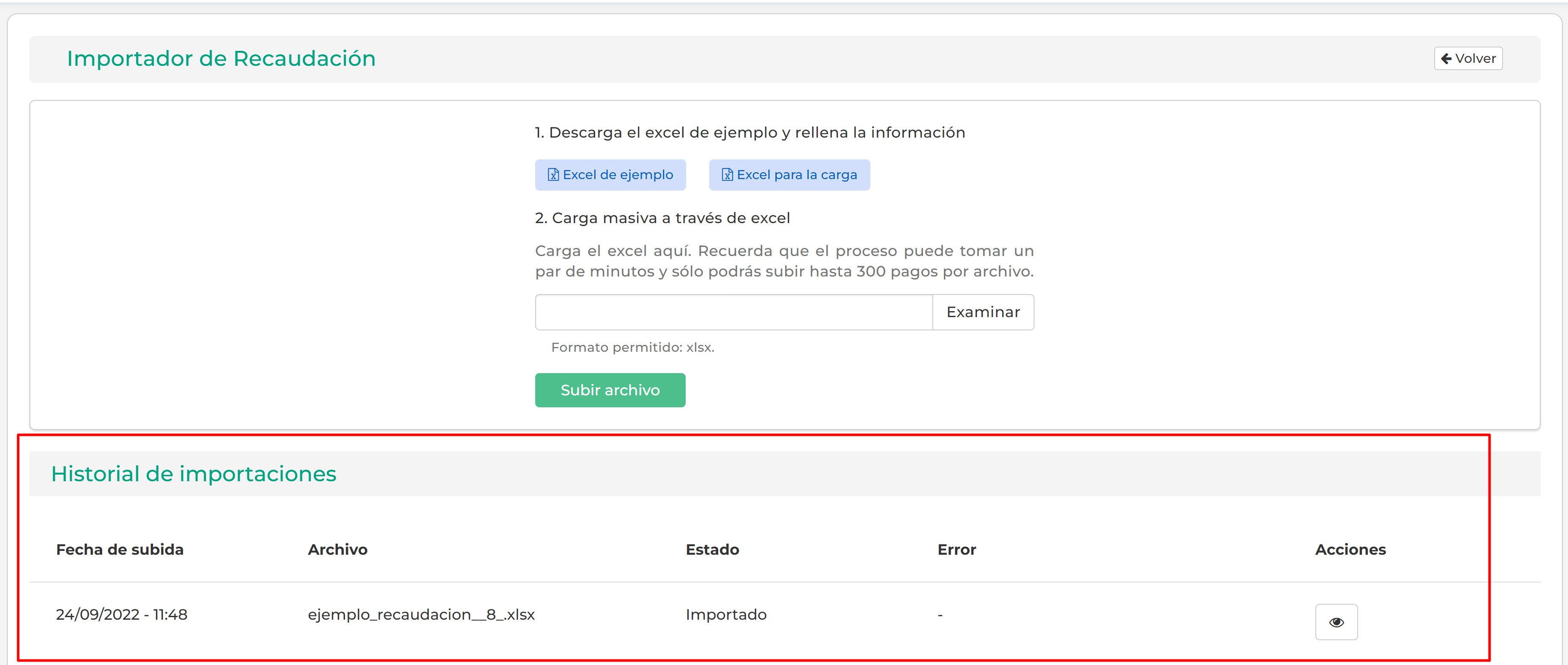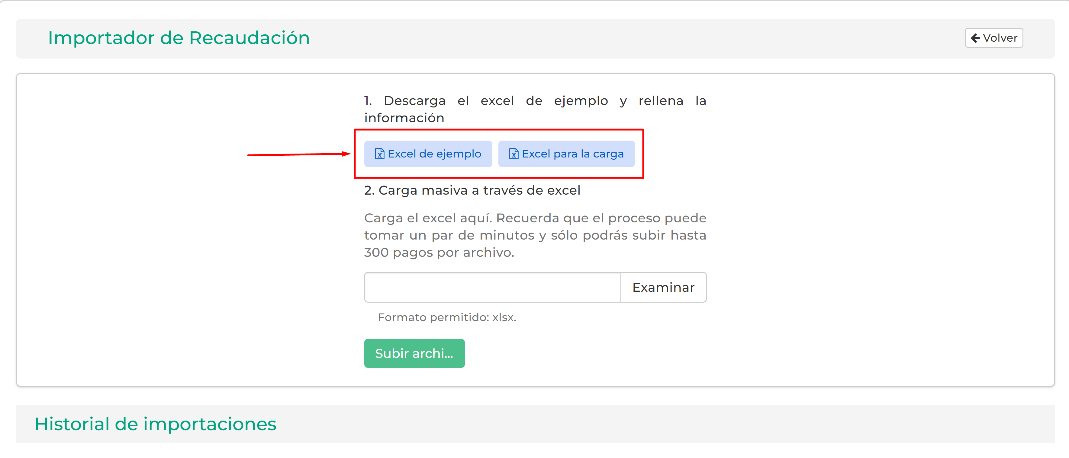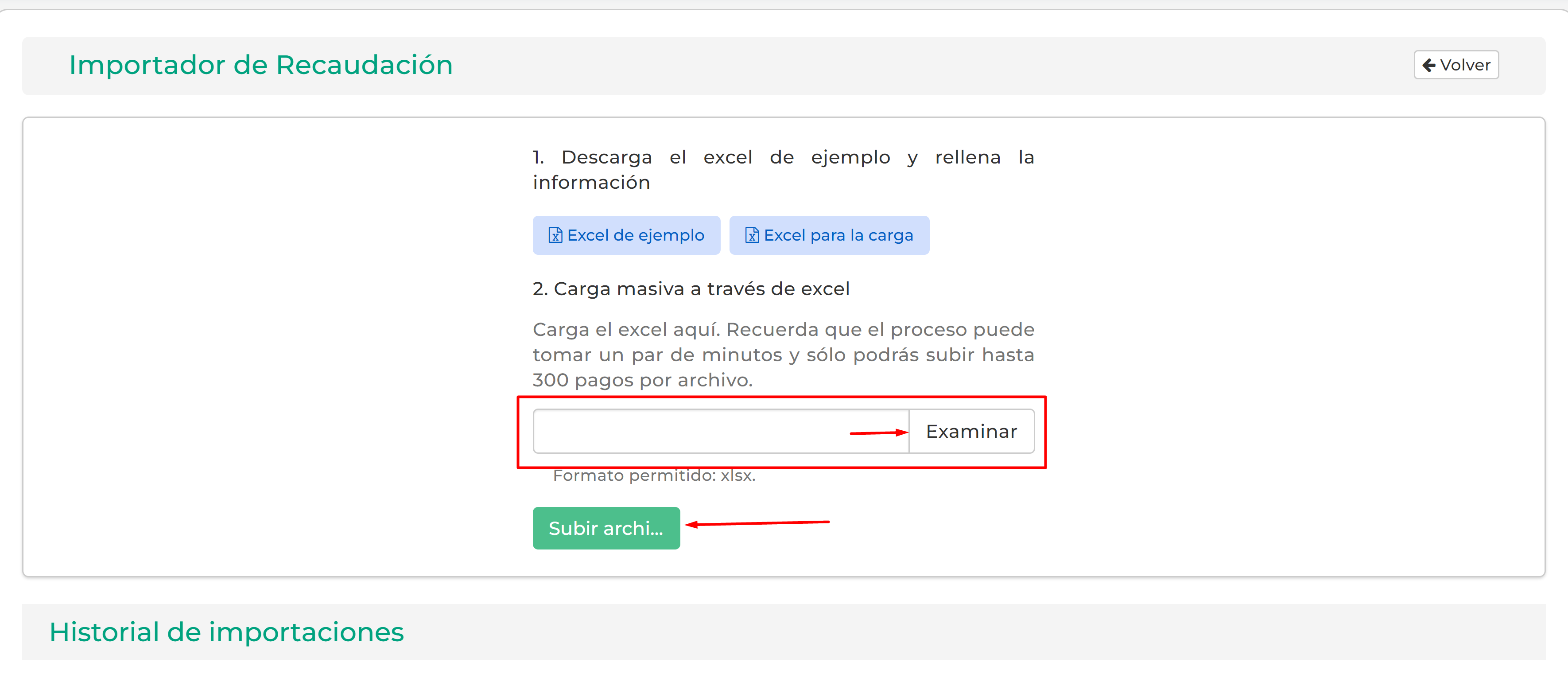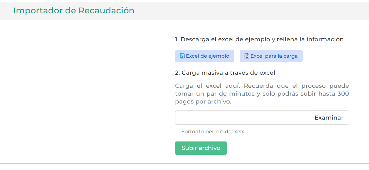 3.Importación de pagos de forma masiva.