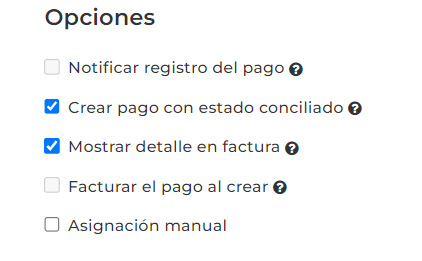 Esta opción le permitirá crear múltiples registros de pagos