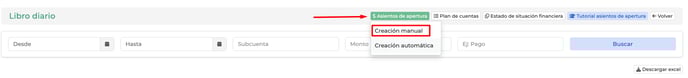 Una vez se ingresa a la plataforma deben dirigirse a Contabilidad y finanzas → Libro diario → Asientos de apertura → Creación manual.