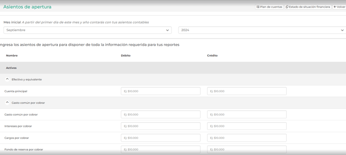 Para comunidades nuevas: Es importante que el administrador tenga conocimiento de los saldos iniciales de sus activos, pasivos y patrimonios para poder ingresarlos al sistema y empezar a operar.