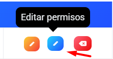 6.Una vez creado podrás modificar los permisos que deseas otorgar a cada usuario, solo debes seleccionar "Editar permisos" en la columna de Acciones