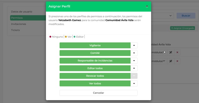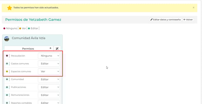 🟡 Amarillo (Ver): podrá ver pero no editar ese módulo.