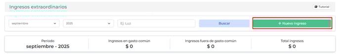 3. En la nueva vista haz clic en el botón verde Nuevo Ingreso (Ubicado a la derecha). Acá es donde ingresarás los Rendimientos e Intereses de tu depósito a plazo.