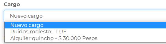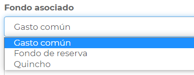 - Fondo asociado: En donde se recaudará el dinero del cargo, puede ser cuota de mantenimiento o un fondo en específico.