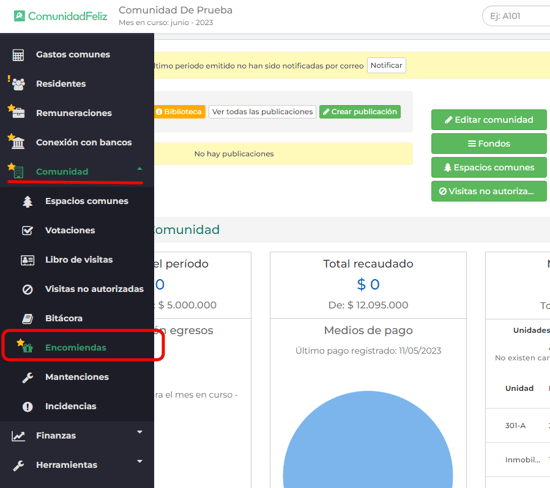 Para acceder ingresa al módulo de Comunidad y luego Encomiendas.