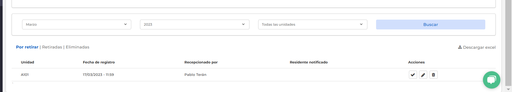 - Por retirar: todas las encomiendas recibidas que aún no han sido retiradas